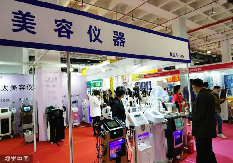 2021年4月20日,第三十七届北京国际美容化妆品博览会(春季)上的美容仪器展台。/视觉中国