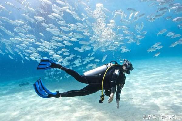 如果你没有潜水执照,又觉得浮潜仅仅是漂浮在水上,不够过瘾,那么,你可以选择体验性潜水。有专业潜水教练教你潜水装备的使用,全程由潜导带领陪同你下潜到海里近距离观赏鱼类和珊瑚。建议提前就预定好体验潜水一日游,因为当地的专业持证潜导人数有限,选择正规有证的教练性好一些。需要提醒注意的是,体验潜水后因为适应海底压力的原因,需要间隔12小时到24小时以后才能搭乘飞机返程,所以潜水的行程安排记得跟返程日期间隔1天哟。