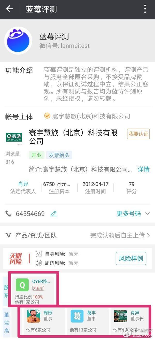 去年测五星级酒店不换床单火爆一时,蓝莓主要做高端消费评测,如酒店、旅行、信用卡、保险等。从公众号注册信息来看,蓝莓评测的母公司寰宇惠旅,寰宇是穷游网的全资子公司。由此可见,蓝莓测评是穷游内部孵化的内容创新项目。