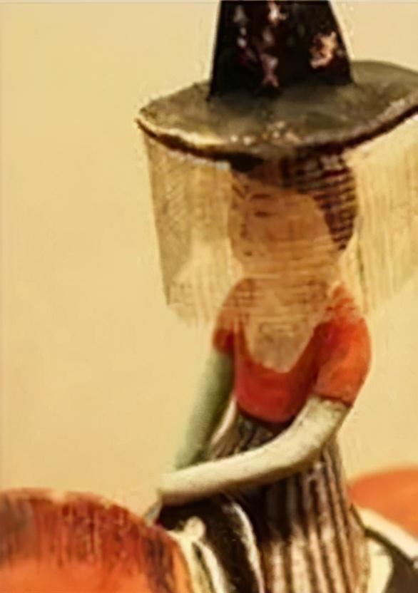 帷帽由皂纱制成,造型是宽檐+下垂丝或薄绢的组合,下垂丝 短一些的叫做帷帽, 长些的就被唤做幂篱。