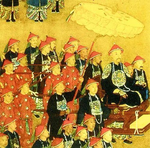 不过,像这样大规模的抬轿子撑伞极费人力也不甚轻便,所以当皇帝需要远途出行的时候,就出现了下面这种改良版的遮阳神器。