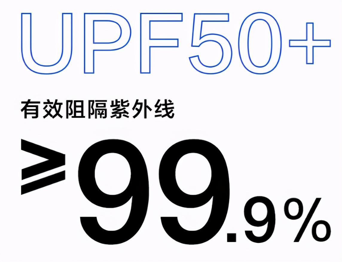 在防晒力度上,采用科技防晒纤维,持久防护,达到UPF50+,紫外线阻隔率高达≥99.9%,出行时尽享日光浴,无惧紫外线困扰啦~