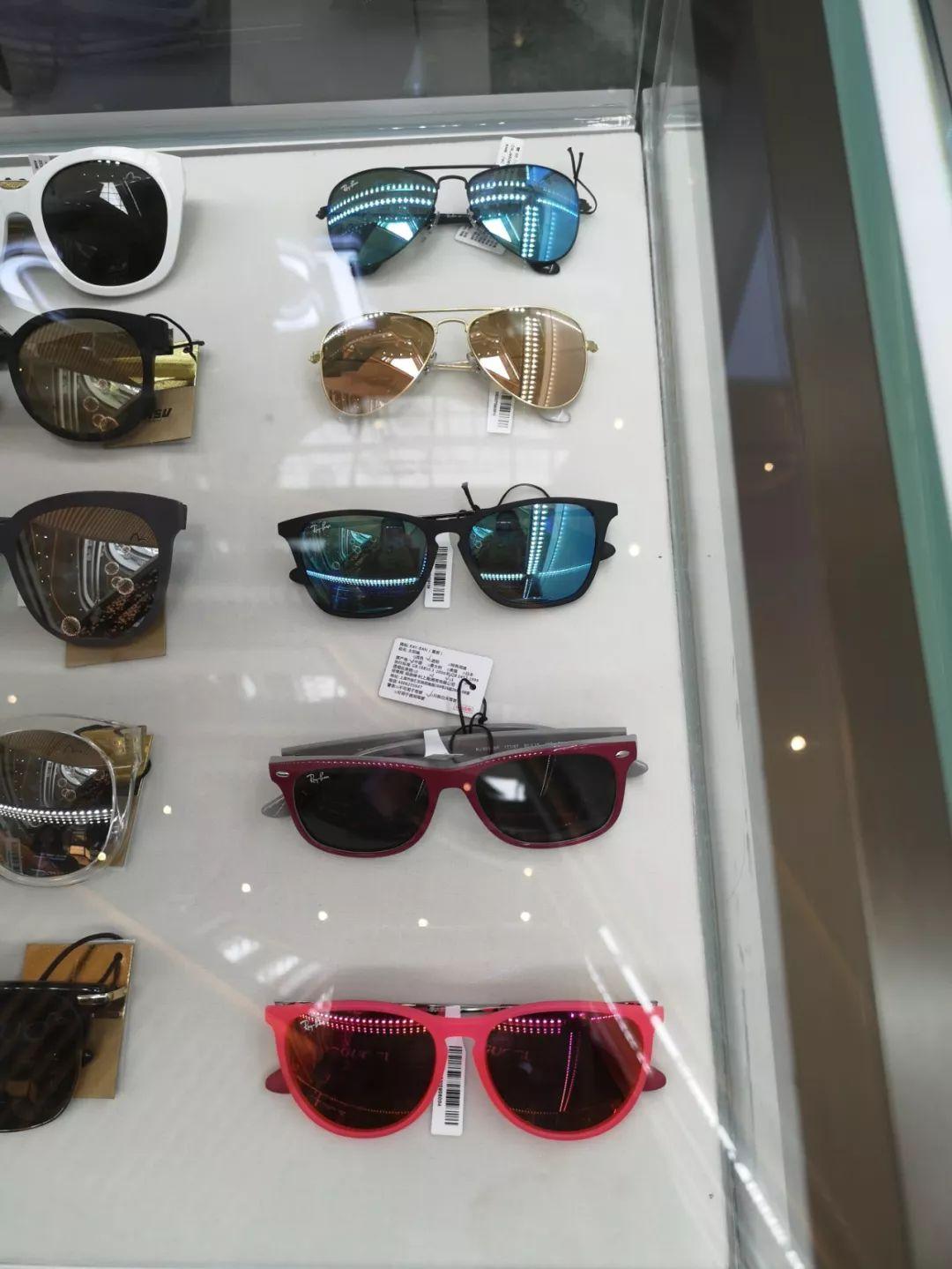 该品牌就是多个商店有的开架专柜品牌,也是为数不多此类品牌(Jins、EGG*、木九十等)中有售卖儿童太阳镜的。据店员介绍,这些儿童太阳镜就是亲子款,镜架比较可爱,尺寸稍小,其它与成人太阳镜无异。我们在查看该品牌的标签时发现不是所有标签都标注了镜片类型等基本信息,感觉有点不靠谱。