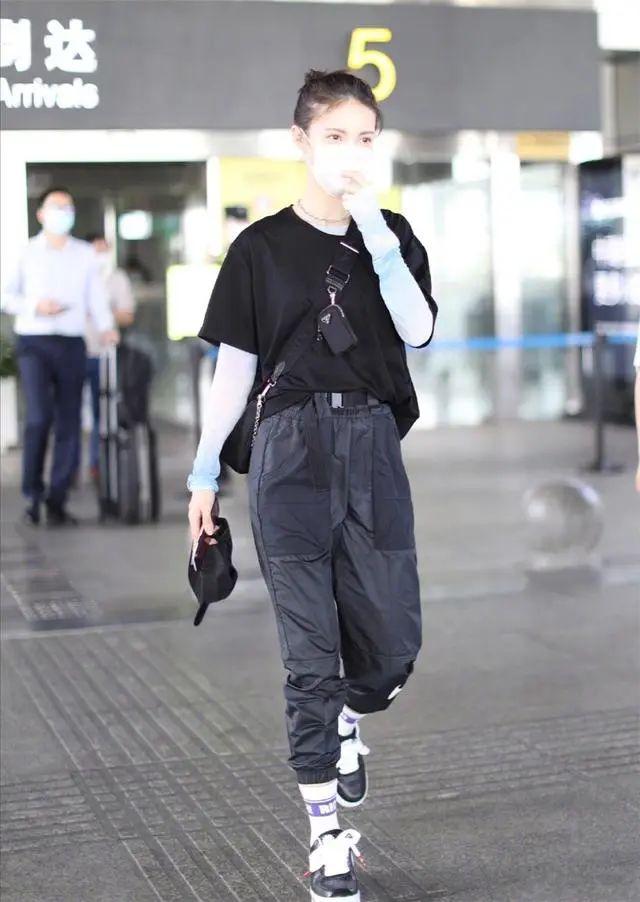 除了短裙和短裤,破洞裤也是很多人夏天爱不释手的单品,破洞裤也和工装裤一样自带设计感,但不同的是,破洞裤的设计感会使裤子更有朋克风,夏天穿也更清凉透气,小个子女生就可以像周冬雨这样选择锥形破洞裤来搭配“防晒套装”,更显娇小可爱。