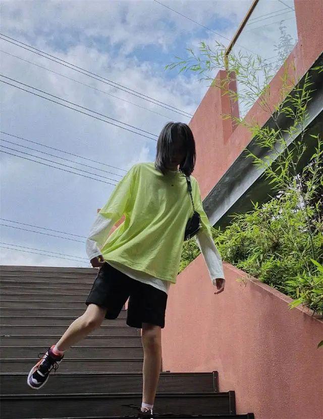夏天喜欢穿得休闲一点的女生还可以用宽松的短T和长T来搭配休闲短裤,这样搭配不仅在风格上更加舒适随性,偏向酷酷的街头风,在实用性上,也不得不说宽松版型的衣服和裤子确实比修身款的T恤和半裙穿着舒服透气许多,更适合炎热的夏天。