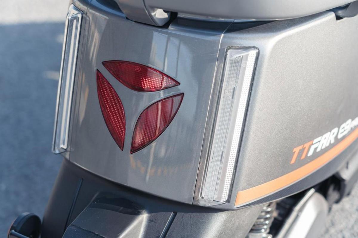 正面的大灯将雅迪自家logo嵌入了进去,高流明的大灯显得炯炯有神,就算是白天也看得出来很亮,晚上也无需担心行驶。转向灯是流光的,赋予灯光更多动感,尾灯同样亮度不俗,能引起后方注意,行驶。
