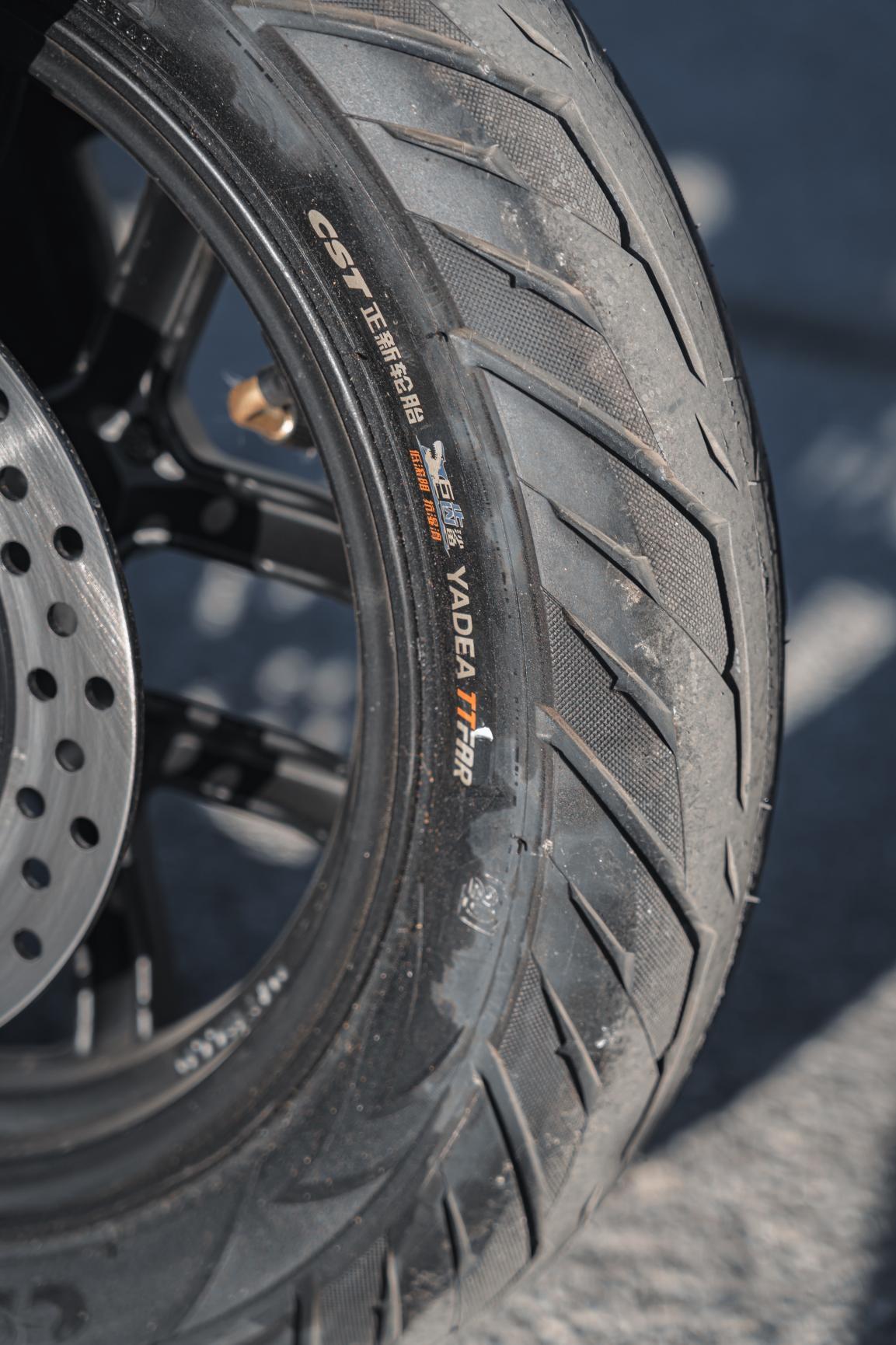 前12寸的轮毂,用的是定制橡胶材料,胎面花纹设计的TTFAR防滑轮胎,长续航、抓地力、排水性、防滑性能都更到位。在复杂路面,尤其冬天地面湿滑,甚至雪天,也能达到更好的抓地力。