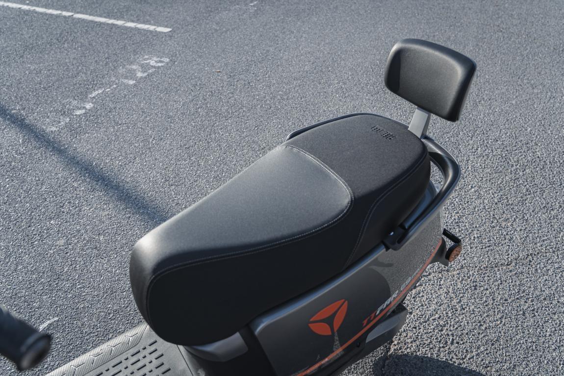 坐垫也是驾驶舒适的关键,650mm加长座垫,更重要的是加入了高弹性海绵填充,支撑面积大且回弹舒服,长时间骑行可以很舒服。