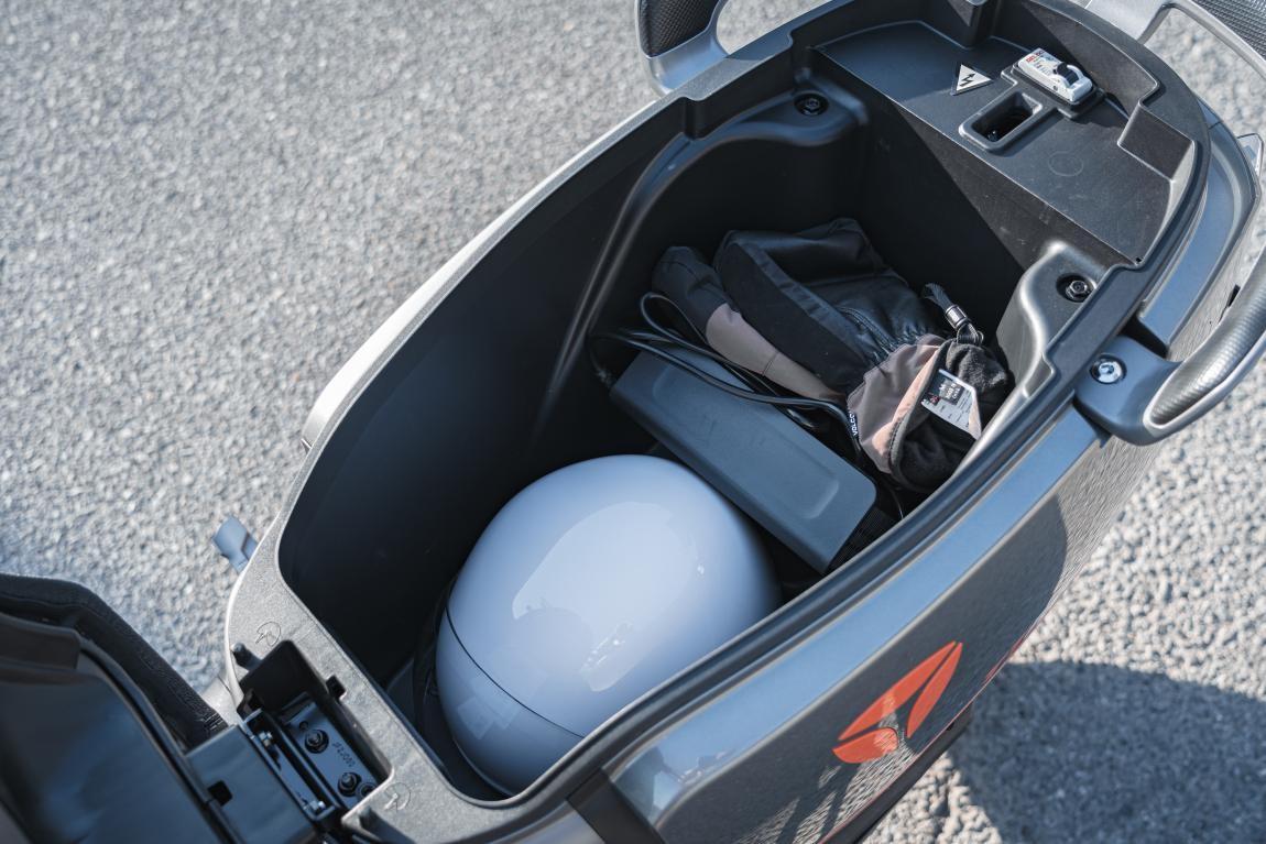 坐垫下还有有32L的座桶,放下头盔、手套、充电器之后依然还有不少空间,充分满足日常使用了。