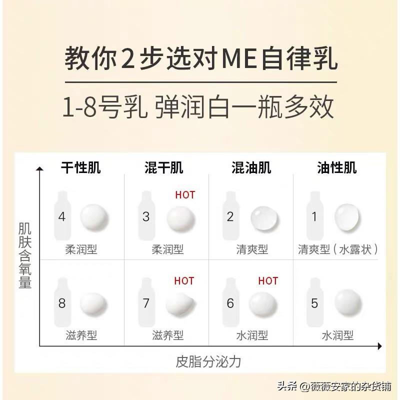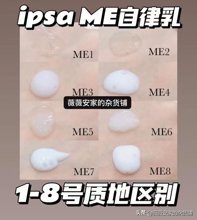 普通肌肤选择ME 1-8号,看图更直观明了。先竖着选,选择适合自身肤质的两个号,然后根据肌肤含氧量或者喜欢的质地来挑选。1/5适合油痘肌,2/6适合混油肌,3/7适合混干肌,4/8适合干性肌。其中1-4适合爱运动,含氧量高的肌肤,帮助肌肤规律性新城代谢,培养出更健康的细胞;5-8适合少运动,含氧量低的肌肤。区分细,很人性化的一款乳液。这也是为什么IPSA在日本一直都很火的缘故,之前也经常限购,因为它几乎照顾到了所有肤质的需求,不管你是啥肤质,总能找到适合自己的一款~IPSA在日本也是属于比较小众不温不火的牌子,犹如瓶身设计一样,很低调~它们家的遮瑕盘、清洁面膜也很好用,之后会给大家码ipsa系列介绍。
