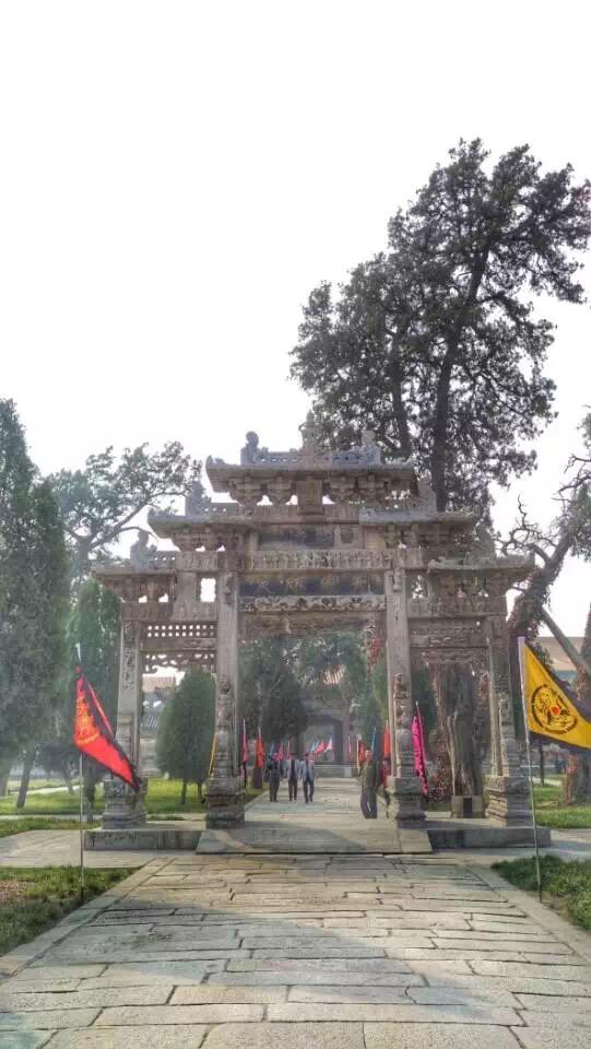“天威咫尺”石牌楼,明代万历年(1573~1620)所建。结构为四柱三开间五楼式。其建筑独具匠心,雕刻手法精湛,采用了圆雕、浮雕、、透雕等各种技法;建筑构图以中国古代象征吉祥如意的禽兽花草为主,极具的艺术价值,是庙内保存完整,等级高的一座石碑楼。