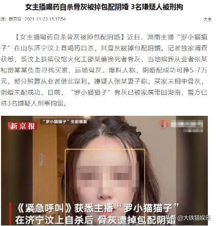 然而事情到这里并没有完,在她去世一个多月后,又有新闻爆出她的骨灰被掉包配了阴婚。