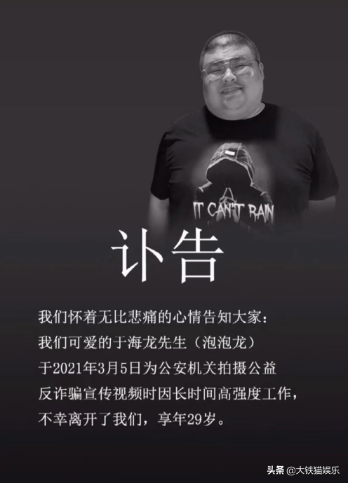 2021年3月5日,悲剧传来,年仅29岁的泡泡龙没有等来下一顿美食。