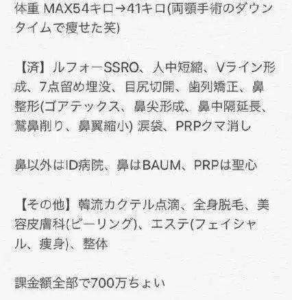 不过这位女生可不止做上面这两项矫正手术,据她自己说,她还做另外十几项整形类手术。