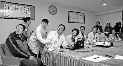 小花父亲(左一)听取专家初步会诊 新文化记者 孙立国 摄