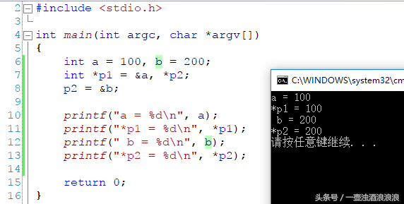 *表示该变量的类型是一个指针变量,指针变量名是p1而不是*p1;如果在同一行定义多个指针变量应该是:int *p1, *p2;而不是int *p1, p2或者 int* p1, p2;给指针变量初始化有两种方式:在定义时初始化,如int *p_2 = &b;先定义再初始化,如int *p1; p1 = &a;*p1是p1所指向的变量的值;一个指针变量只能指向同一个类型的变量。(3)对于指针变量的两个运算符“*”与“&”:
