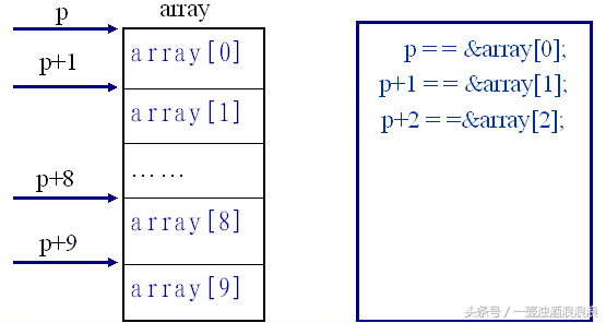 如:int array[10];int *p = array;则此时p+i和array+i都是数组元素array[i]地址