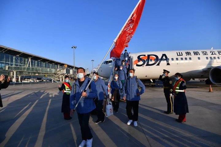 3月17日下午5点30分左右,春日余晖洒满空旷的跑道,随着飞机一声声渐近的轰鸣,缓缓降落、舱门开启,枣庄市第三批驰援湖北医疗队员,与山东第四批、山东第八批其他地市的医疗队员们一起回到了家乡,英雄们回家了,他们将在济南集中隔离休养14天,然后回枣庄市。