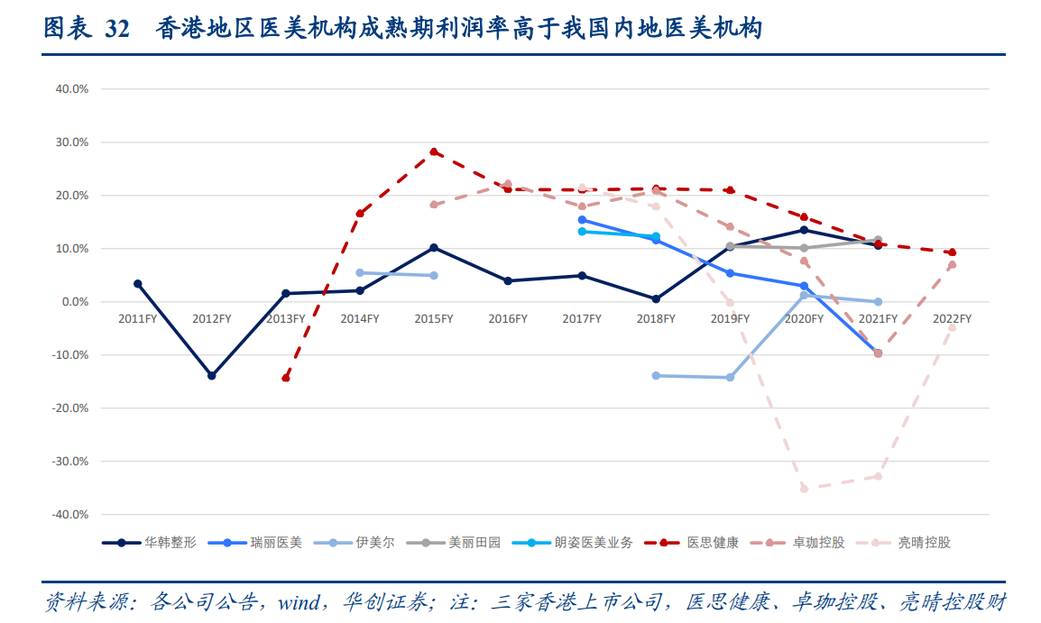 深度挖掘我国香港医美市场后,我们发现香港地区的医美机构走出了独特的道路,不仅 诞生了高市占率的头部连锁品牌,同时头部机构摸索出了在成熟运营模式下的标准化扩 张之路,在保持利润率的同时实现门店的扩张。
