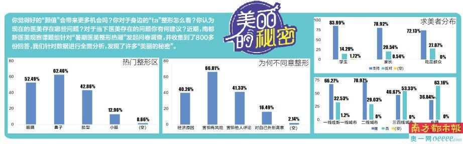 你觉得好的“颜值”会带来更多机会吗?你对于身边的“ta”整形怎么看?你认为现在的医美存在哪些问题?对于当下医美存在的问题你有何建议?近期,南都新医美观察课题组针对“暑期医美整形热潮”发起问卷调查,并收集到了800多份回答,我们针对数据进行分析,发现了许多“美丽的秘密”。