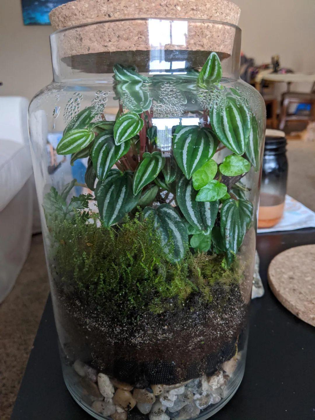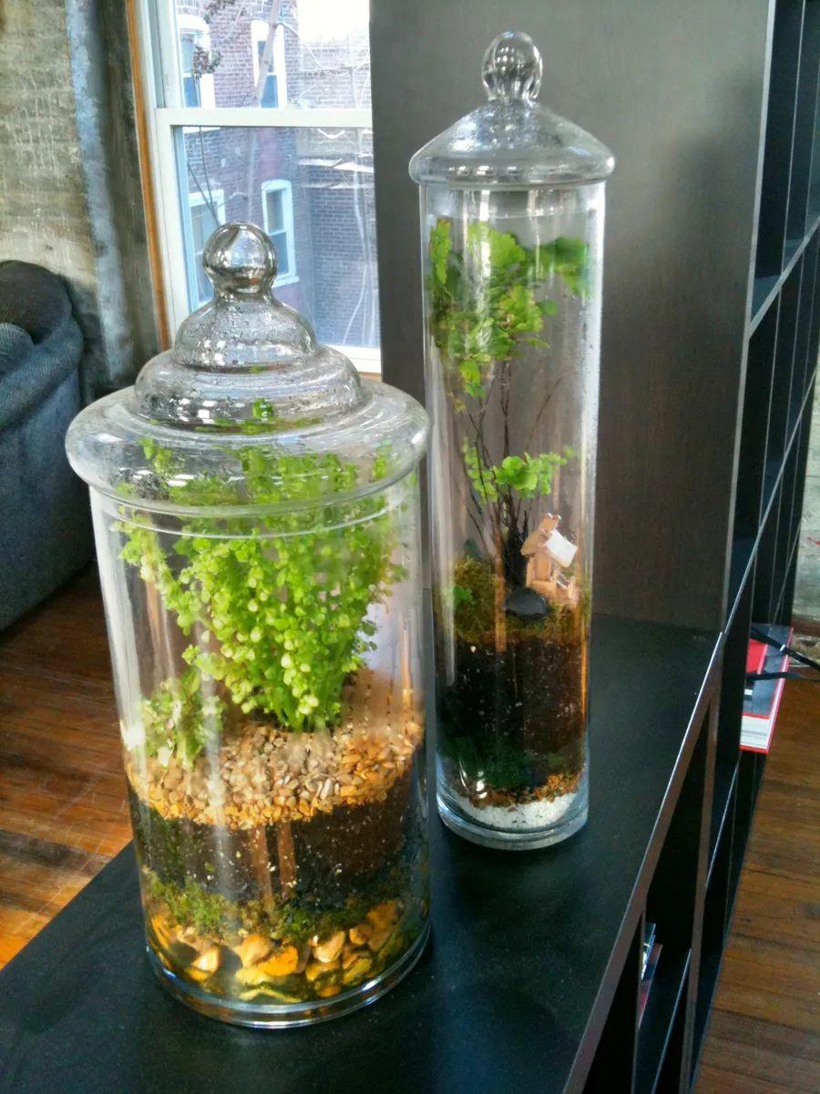 在这些半开式的玻璃容器里栽种植物,肯定是需要定期补充水分的,还要注意摆放在一个有适当散射光的地方,光照不能过足,环境要通风,注意保持温暖,定期往盆土里喷水,维持微微湿润,但一定要避免积水,掌握这几个技巧,这些植物就能养得很好了。