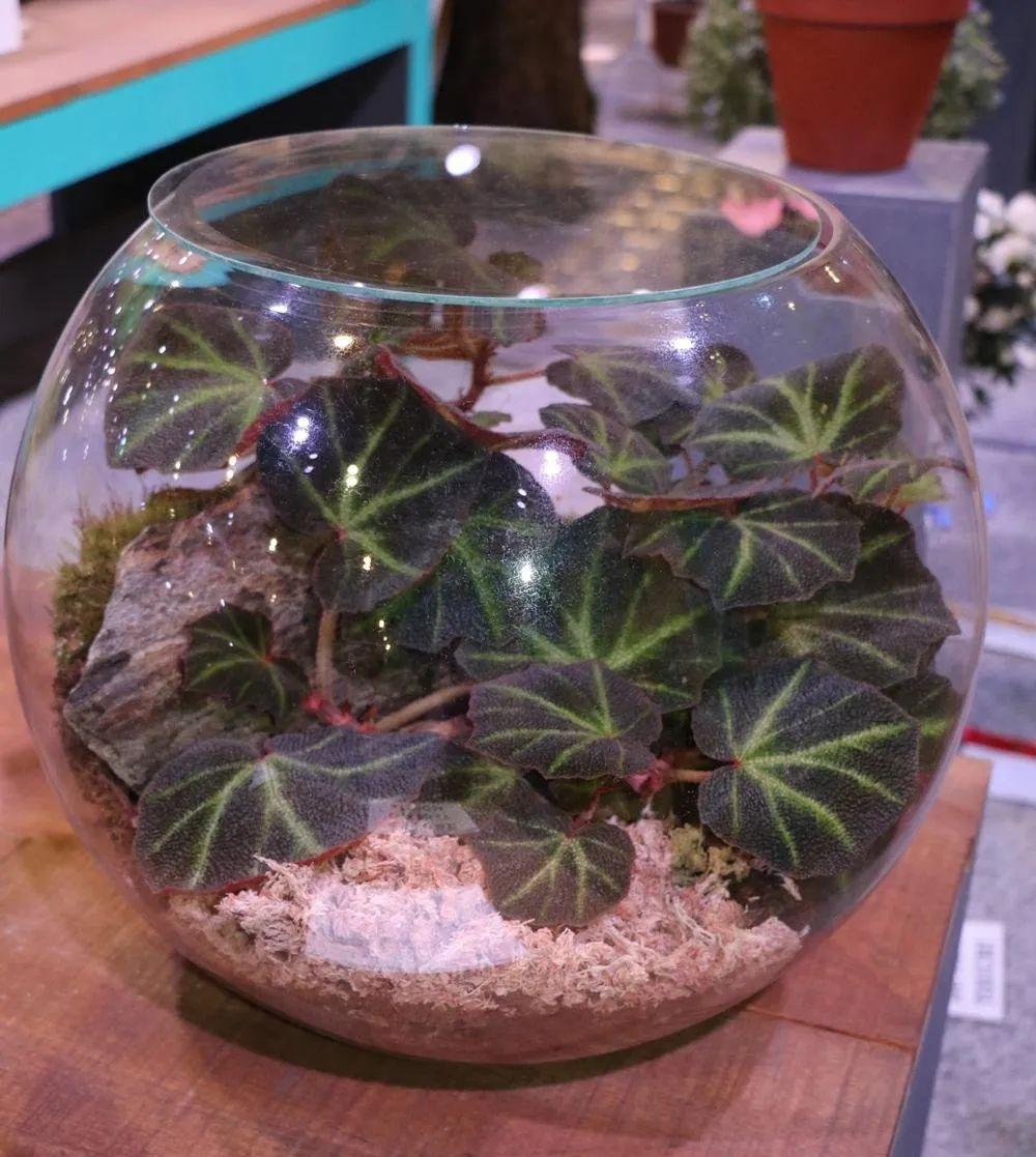 在玻璃容器里也可以种蟆叶秋海棠。