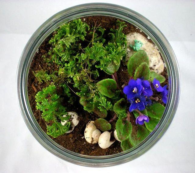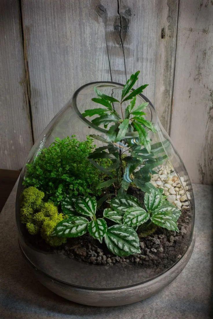 下面这些植株小巧,耐阴耐水湿的植物,都很适合布置成微型植物景观,养玻璃盆里: