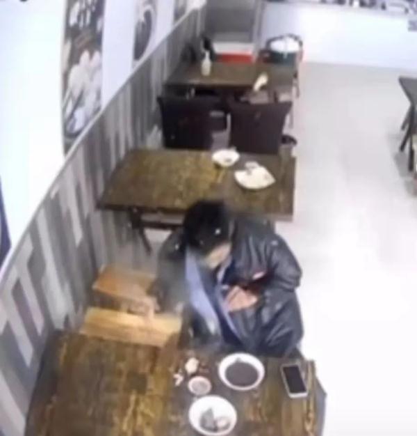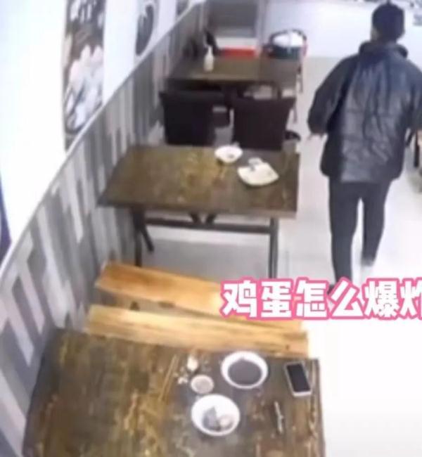 视频显示,一身穿黑色衣服的男子正坐在一早餐店吃早餐,当男子用筷子企图打开鸡蛋时,鸡蛋突然“嘭”地一声爆炸了。鸡蛋内物质飞溅至男子脸部以及身上,一鸡蛋壳直接飞过男子掉落在地。男子离开餐桌,到另一桌取纸巾擦拭,并一边跟店内工作人员说,“鸡蛋爆炸了。”工作人疑惑的声音传来,“啊?”男子重复两次,“鸡蛋爆炸了,鸡蛋炸了。”工作人员不可思议,“鸡蛋炸了???”