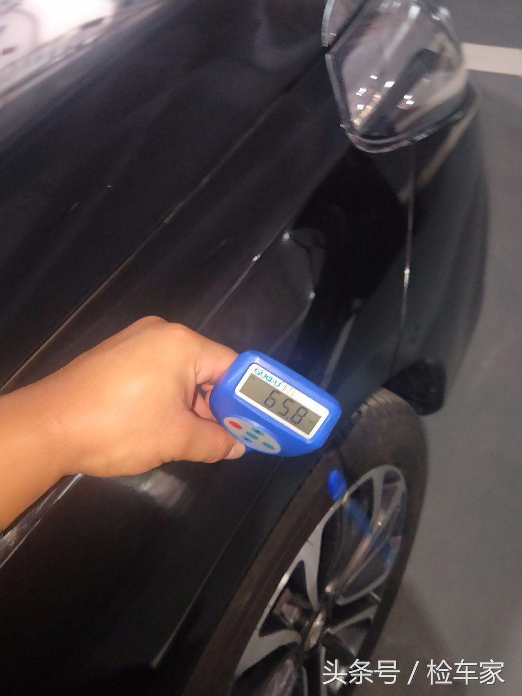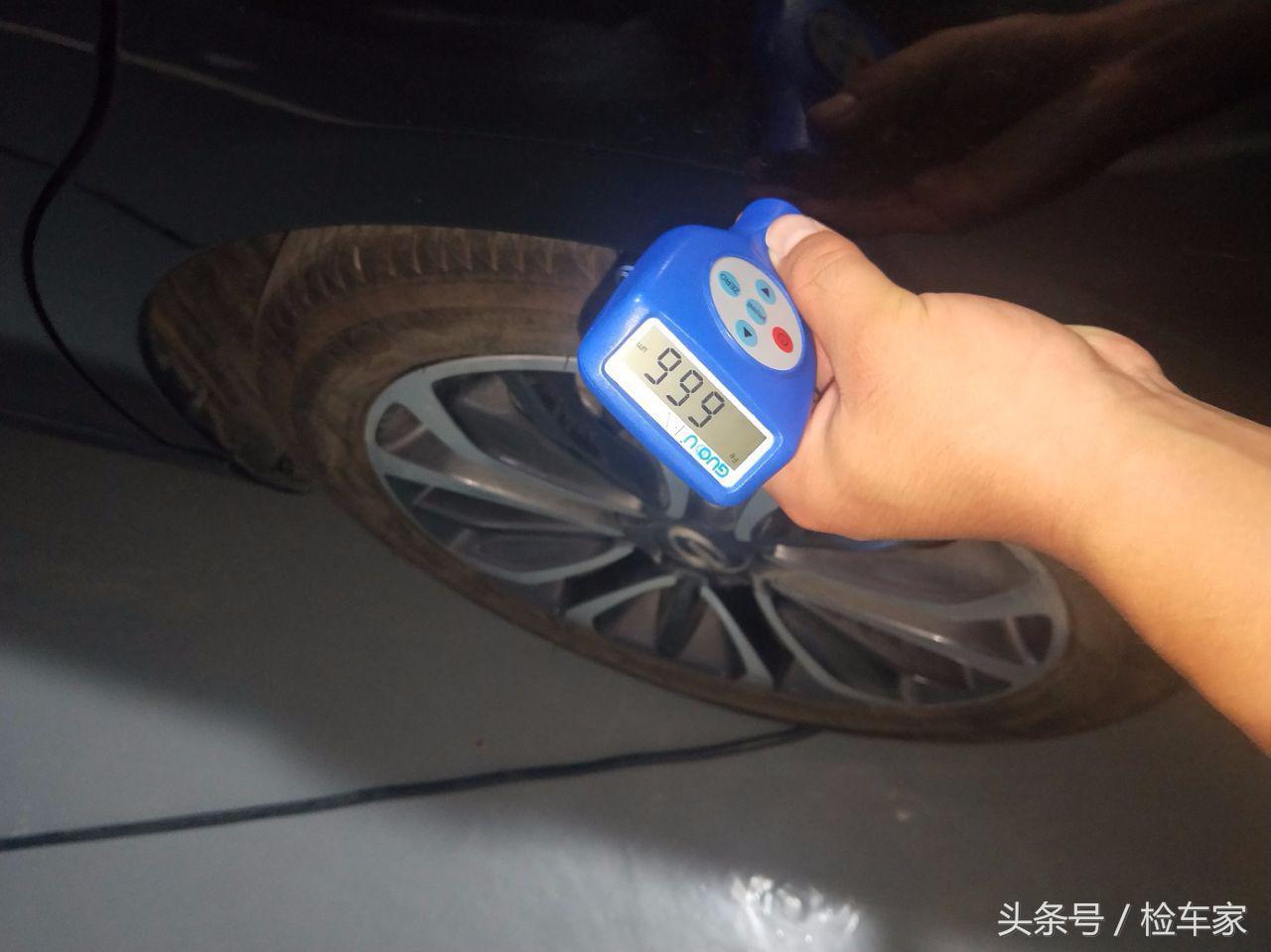当检测到左后门的时候发现有钣金,这个客户也知道情况,说是被电动车把手给挂上去了。