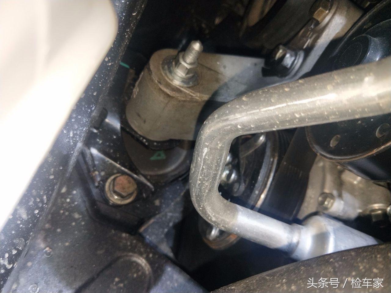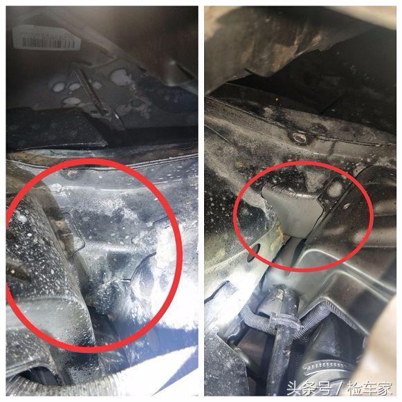 右前纵梁有焊接喷漆痕迹,未发现钣金,说明右前纵梁切割更换过了,我们继续看。