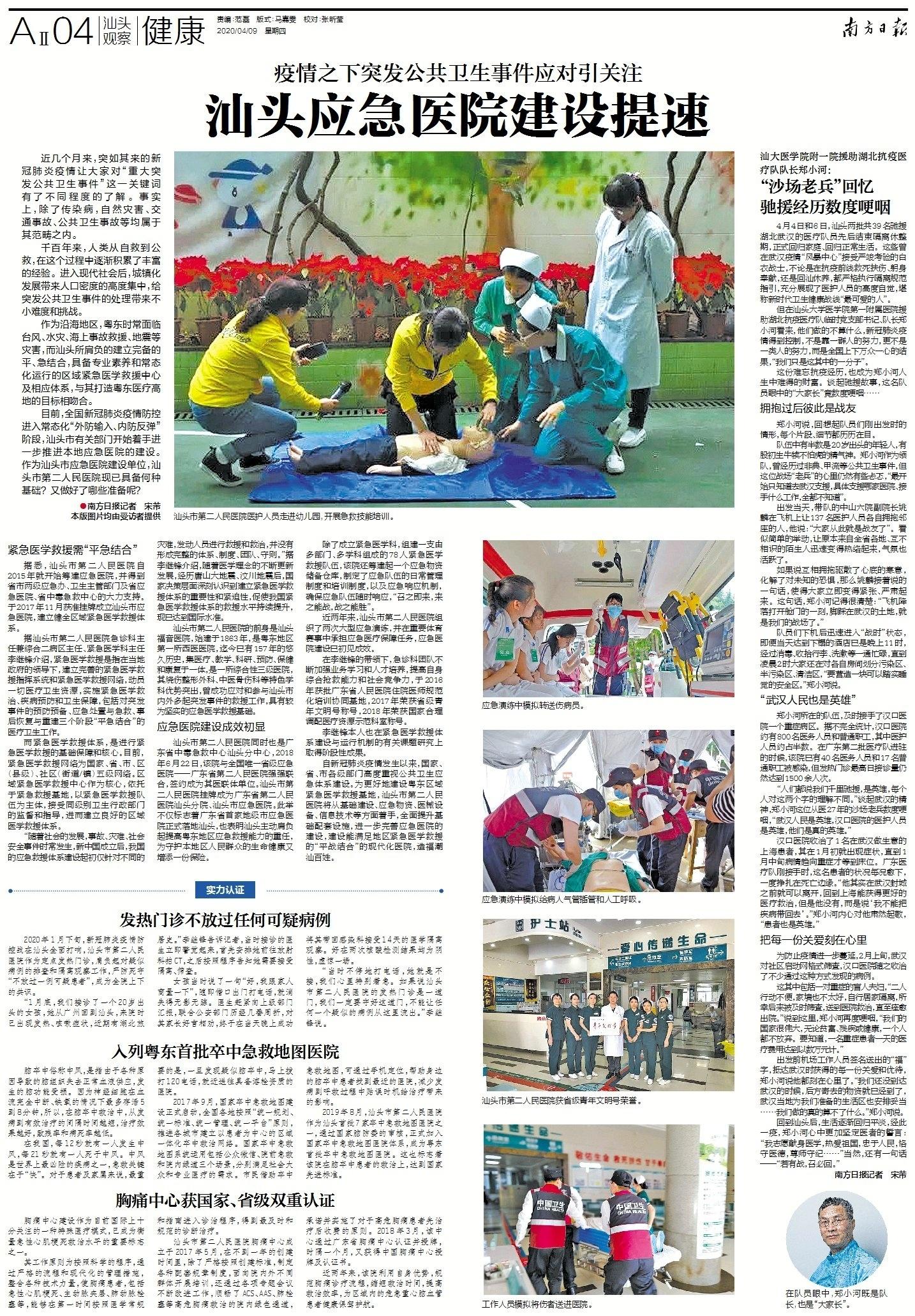 近两年来,汕头市第二人民医院组织了两次大型应急演练,并在重要体育赛事中承担应急医疗保障任务,应急医院建设已初见成效。