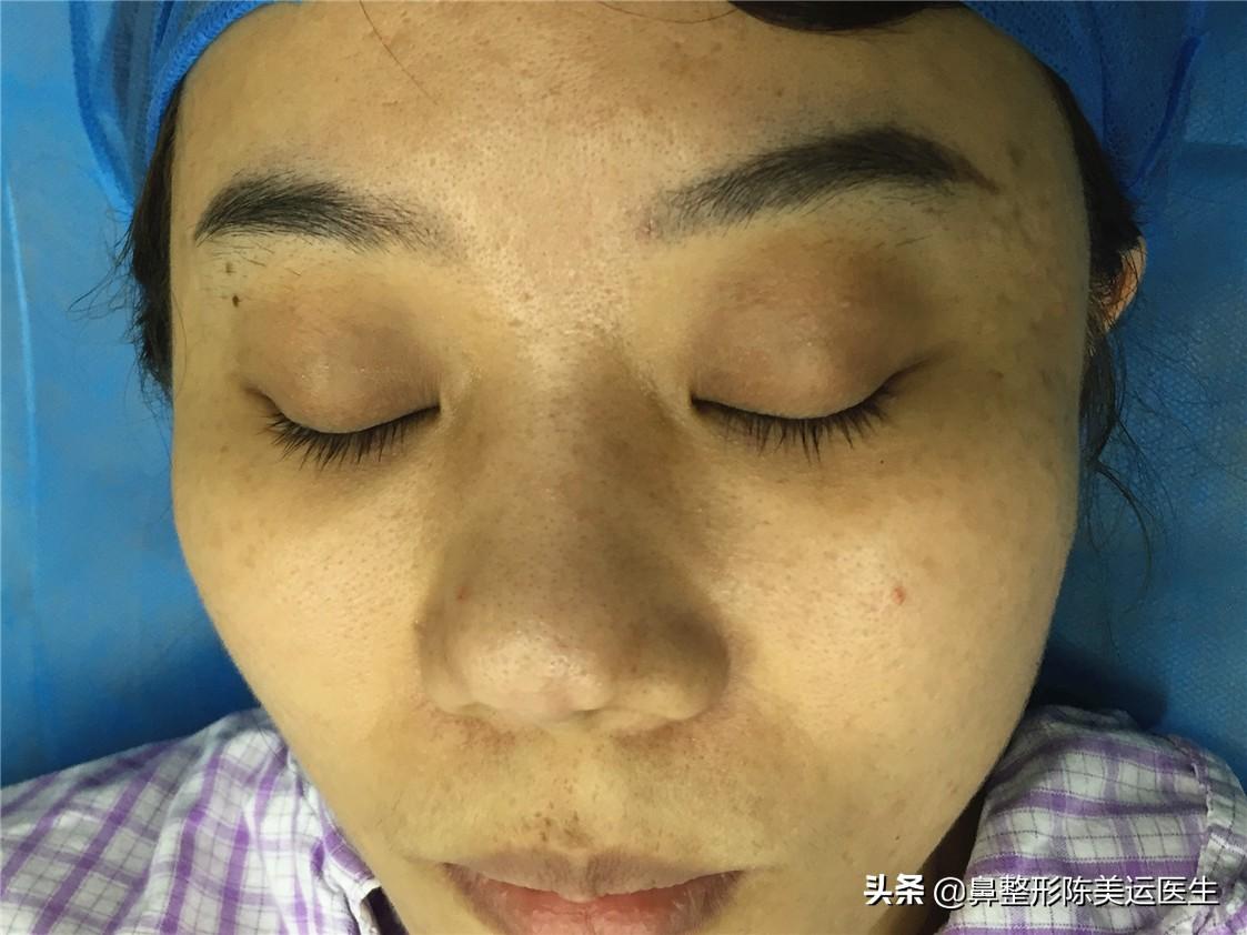 4、感染炎症会妨碍切口愈合从而加重增生,从下图可以看出,小锐的鼻尖处因感染已导致部分软组织凹陷变形、鼻孔不对称,这也是引发她增生严重的原因之一。