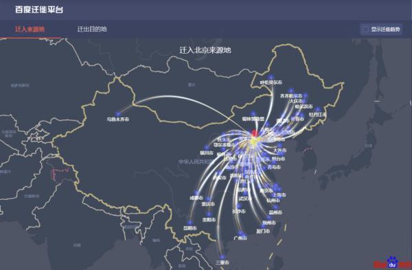 7月18日迁入北京来源地。图自百度迁徙平台