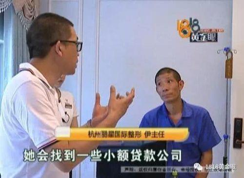 杭州丽星国际整形 伊主任:“首先顾客来做手术,比如说她钱不够,她会找到一些小额公司,这些公司呢,在每个医疗美容医院都设点。医疗上的问题,你找医院,毕竟医院给你做的手术。”