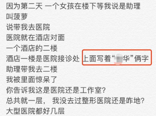 期间助理为了让洪老尸更信任医院,还指了指某个咨询室,对洪老尸说另一个网红两年前就是在这儿做的手术。