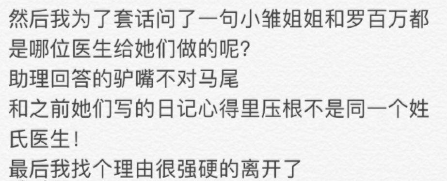 羊算了一下时间线,罗百万的鼻子是半年内做的,而根据助理的说辞,新医院至少在那做了2年。