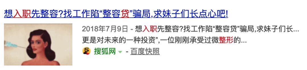 找工作时,面试官会暗示求职者的外貌不过关,想要入职必须先整形,没钱的话可以拉到公司去借“整形贷”。