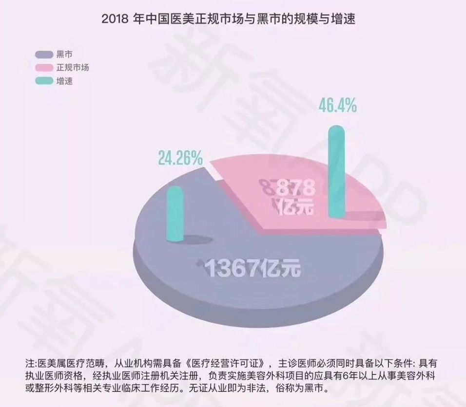 新氧发布的《2018年医美行业白皮书》中显示,尽管中国医美市场规模已经超过了2200亿,但仍然有近6倍的增长空间。