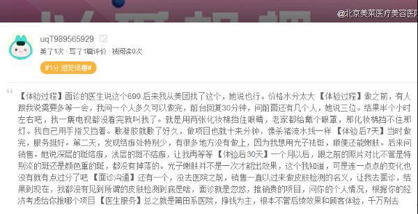 记者注意到,北京美莱医疗美容除了遭到消费者投诉退费问题外,在美团等第三方服务平台上被多名消费者打“低分”。美团APP显示,北京美莱医疗美容的用户评价达852条,其中“低分”188条。