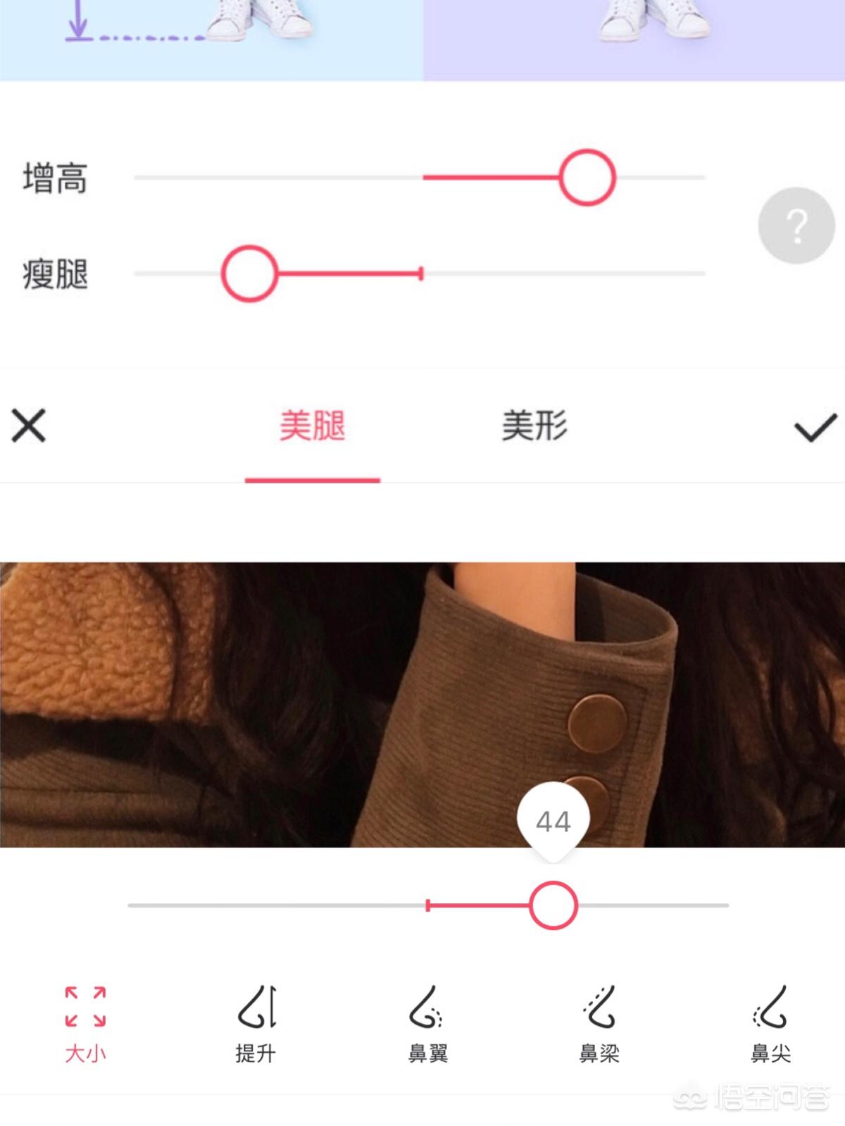 美颜神器No.2——美图秀秀这款美颜神器应该是人们耳熟能详的了吧,它也是伴随小编好多年的自拍App了,现在随着美颜神器的换代,美图秀秀听起来也有一丢丢的土气了,不过不得不说它是真的真的很好用啊,的时候“懒人”和新手党。如果说前面小编推荐的那款App需要自己去把控和调整对于新手党来说比较费劲的话,美图秀秀就完全不用担心啦!想要快省力的做法就是人像美容前面的“一键美容”,不过这样满足不了你的要求的话,面部重塑里也可以进行调整你的五官,而且不需要自己推动,只需要在下面左右滑动调整幅度大小就可以啦,我个人还比较喜欢增高长腿这一选项哦。