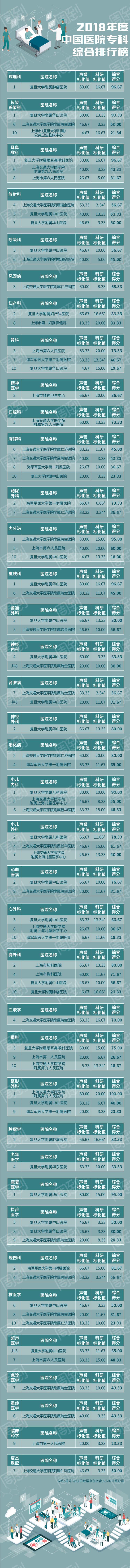 《2018年度中国医院专科声誉和综合排行榜》有40个专科纳入。