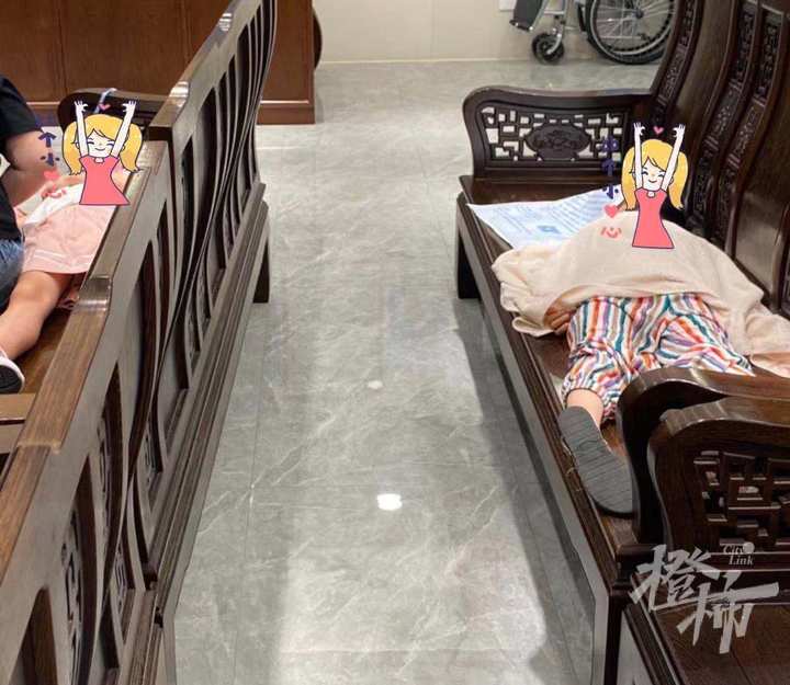 22点44分,在门口候诊区睡着的两个小女孩