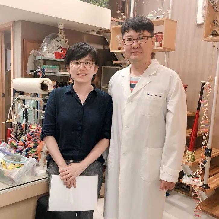 张琦博士(左一)与韩国中央大学副校长、医学院教授金原用合影