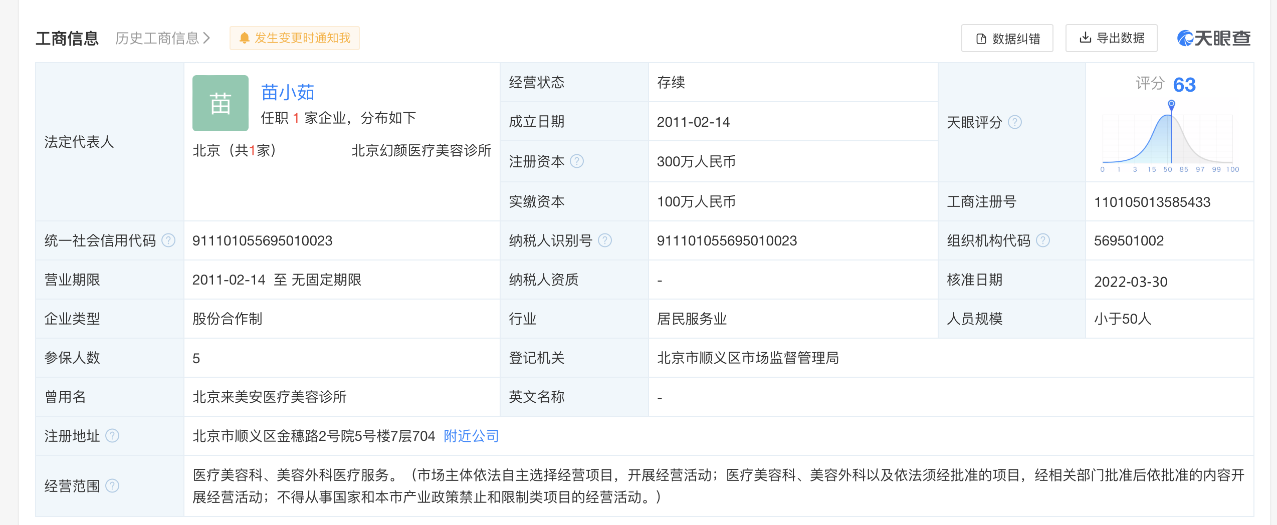 天眼查App显示,来美安诊所多次因医疗损害责任纠纷、侵权责任纠纷等被起诉。2021年10月,该诊所及其法定代表人苗小茹因医疗损害责任纠纷被法院限制消费。