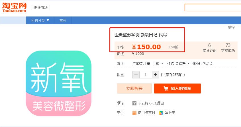 然而,在淘宝、QQ等平台搜索关键字“新氧日记”,网页上会出现不少代写新氧日记以及买卖整形案例图片的商家。在淘宝上,一张整形案例原图售价10元,若配以文字则售价150元,QQ上一篇200字的原创日记标价30元。