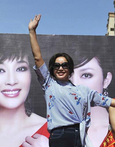 2018年4月22日,宁夏银川,演员刘晓庆现身一医疗美容机构开业现场。视觉中国供图