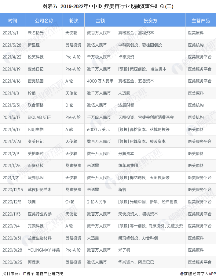 7、医疗美容行业投融资及兼并重组总结