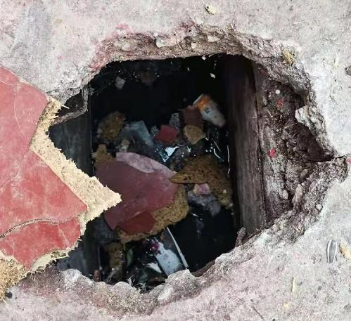 陈女士:“因为搭了块木板,我就没有看到,不知道那里有个洞,我就正好踩在那个木板上,就把那个木板踩破了,我就掉到那个下水道里面去了。”