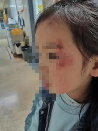 陈女士:“当时我是右手牵着我的孩子,因为惯性,我摔下去之后我还牵着孩子,所以我孩子也一下子头碰在地上,就把她眼角也戳伤了。”
