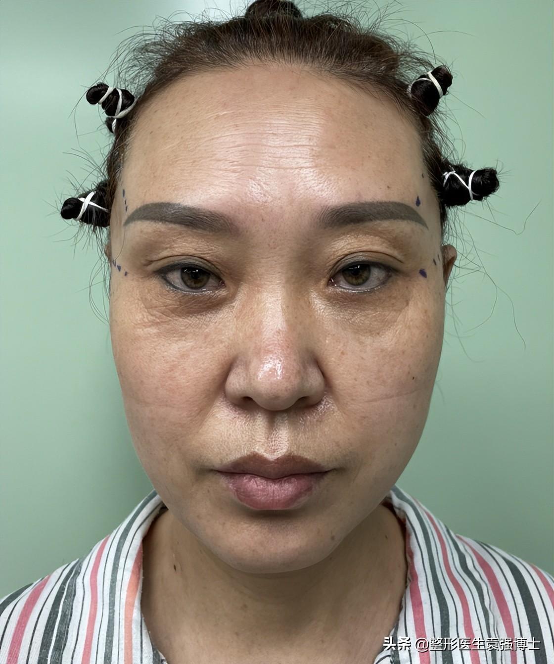 您好!眼部整来自形手术,不仅仅可以让你有一双大眼睛,而且让这双大眼睛看起来更有魅力。但是眼部整形并不单单是切割双眼皮,还要进行开眼角手术,这样手术之后,眼睛才不会单纯的变大造成眼部的不协调,反而影响整个形象,所以在选择手术的时候一定要根据自己的实际情况,加之医生的检查结果,选择一个合适的手术方案,从而提高整体形象。这位求美者是从山西过来北京的,经常看我的直播,好不容易来一趟北京,就想着把面部能看到的松垂问题解决了,虽然51岁了,但说实话跟同龄人比底子还算较好的。
